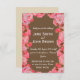 Um convite de casamento elegante, rústico e na moda, com rosa e castanho de avelã. O texto personalizável está em uma escrita elegante contra um fundo marrom-terra. Este convite apresenta um buquê ou flores para casamentos cor-de-rosa embebidas, incluindo rosas cor-de-rosa pálidas com algum verde. Um design simples e elegante para o seu dia especial. O rosa rosa rosa rosa foi casamento temático ou casamento country.