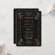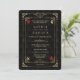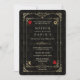 Design de cartão temático elegante inspirado em Casino Royale e O Grande Gatsby. Apresenta estilo art déco preto dourado vintage, uma moldura falsa dourada estilo Hollywood antigo dos anos 20, corações vermelhos, Q e K em dois cantos (simulando cartas de baralho), sobre um fundo com padrão art déco preto dourado. São usadas expressões especiais como num jogo de pôquer. No verso, padrão art déco falso dourado e iniciais entre os naipes das cartas de baralho. Use a ferramenta Personalizar para adicionar suas informações. Para mais, visite minha Coleção Gatsby Casino.