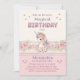 Celebre o dia especial de sua filhinha com este Encantador Convite de primeiro aniversario do Unicórnio! Este adorável Convite Personalizado apresenta um conjunto de unicórnios mágicos contra um fundo floral chique. As suaves matizes de púrpura e rosa se misturam perfeitamente com as ilustrações bonitinhas e caprichosas, criando uma atmosfera sonhadora. As letras de brilho adicionam um toque de brilho a este marco de precioso. Perfeito para o aniversário de uma menina, este convite combina encanto e elegância, fazer cada momento da celebração inesquecível.