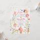 Entre num bosque mágico com este convite de aniversário de fada encantada "Flutter and Twirl". Com delicadas fadas pintadas à aguarela, cogumelos caprichosos e uma borda de pó de ouro cintilante, este design é perfeito para uma celebração com tema de jardim. Este modelo versátil é facilmente editável para qualquer idade, proporcionando um visual profissional e encantador para o grande dia da sua filha.