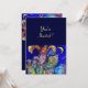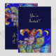 Pintura aquosa colorida colorida, branca e vibrante, em cores vermelho vivo, azul, verde, amarelo-ouro, rosa, fuchsia inspirada no Carnaval de Veneza e Commedia dell'Arte. Um flautista expressivo na noite, luz da lua e um gato azul. Este design legal e artístico também é um belo presente para ocasiões especiais, aniversários, casamentos, natal, feriado, mardi gras, época de carnaval.