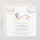 Welcome your new arrival with this enchanting baby shower invitation featuring a whimsical flying stork. The delicate watercolor illustration includes a stork carrying a baby, surrounded by soft, dreamy clouds and charming yellow stars. This design captures the wonder and excitement of a baby shower, especially for a baby girl. The gentle artistic style and sweet imagery create a magical atmosphere, ensuring your guests feel the joy and anticipation of the upcoming celebration. It's the perfect way to invite loved ones to share in this special milestone.