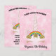 Convite Foco de Unicórnio Arco-íris Dourado Corações Rosa