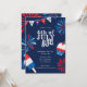 Fogo Patriótico Convite de CHURRASCO de 4 de julho com fundo azul escuro.