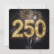 O número dourado 250 é iluminado por fogos de artifício brilhantes que explodem em várias cores contra um céu escuro, criando uma atmosfera festiva.