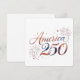 Celebre o 250º aniversário histórico dos Estados Unidos com este gráfico elegante e festivo. O design apresenta "America 250" em uma bela e fluida escrita com uma textura estilizada em vermelho, branco e azul patriótica no estilo de galáxia. Acentuada por fogos de artifício cintilantes e estrelas delicadas, esta obra de arte sofisticada captura perfeitamente o espírito do Semiquincentenário. É uma escolha deslumbrante para uma variedade de produtos, desde convites de festa comemorativos e canecas comemorativas até bolsas tote festivas, roupas elegantes e decoração de casa para as festas.