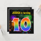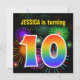 Este divertimento, características de design vibrantes do convite de aniversário um teste padrão colorido inspirado estourando fogos-de-artifício comemorativos, junto com o número "10" tendo um arco-íris colorido inspirou o espectro ou o teste padrão do inclinação. O nome na parte dianteira pode ser personalizado. As características traseiras personalizaram detalhes sobre o partido. Os convites de festas de aniversários como este puderam ser enviados aos convidados potenciais para uma festa de aniversário que está sendo guardarada para comemorar alguém décimo aniversário. [~Z0000337]