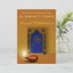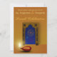 Ilustração feliz de Diwali: diya vermelho (uma lâmpada de óleo indiana copo-dada forma) na frente de uma janela decorativa indiana com fogos-de-artifício fora.