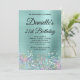 Crie seu próprio convite para comemoração de aniversário de na moda monograma para seu rico. O plano de fundo apresenta um gráfico de arte digital, em forma de papel digital, com brilho feminino, pálido e azul-turquesa ombre. Personalize as cores ou estilos da fonte do convite e do monograma. Os faíscas de luxo, brilho e folha serão criados com elementos artísticos criativos que impressão nos convida como uma foto. Fabuloso aniversário de 21 anos para seu melhor amigo.