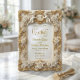 Defina um tom de luxo atemporal para sua cerimônia com este design ornamentado, apresentando um efeito de relevo dourado impresso e detalhes clássicos de querubins em creme suave. Este design apresenta uma rica composição visual simétrica que imita uma moldura dourada em alto-relevo. A obra de arte exibe dois anjos querubins repousando sobre cantos intricados de enrolamentos, conectados por aglomerados de rosas em flor em tons metálicos quentes. Uma crista oval central destaca o monograma do casal, colocada contra um fundo liso de cor de marfim. A tipografia combina um roteiro fluído romântico para os nomes com uma fonte serifada tradicional para detalhes, para garantir a máxima legibilidade. Esta é uma imagem impressa plana com um efeito de folha de metal falsamente em relevo, não material realzado ou folha metálica.