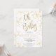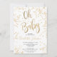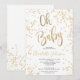 Folha de ouro moderna confete branco oh chá de fraldas com um elegante pincel de caligrafia.