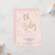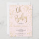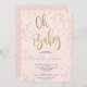 Folha de ouro moderna confete pastel cor-de-rosa oh chá de fraldas com um pincel elegante de caligrafia.