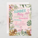 Estes convites apresentam folhas de palma com flores tropicais e flamingos cor-de-rosa em fundo rosa. Este convite é facilmente personalizado para o seu evento simplesmente adicionando os seus detalhes.