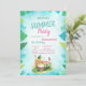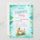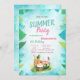 Estes convites apresentam folhas de palma com frutas tropicais sobre fundo azul. Este convite é facilmente personalizado para o seu evento simplesmente adicionando os seus detalhes.