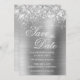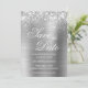 Um brilho de prata com uma sombra de cinza de prata para o seu casamento, salve as datas. A fonte decorativa "Salvar a Data" é um estilo clássico de caligrafia de rico em conjunto com um estilo de fonte moderno. Faux glam glitter para salvar as datas.