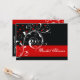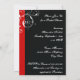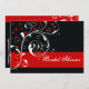 Folha de rolagem floral elegante, chá de panela de casamento florescente, vermelho, com folhas brancas de rolagem, espirais e enroladores e pontos vermelhos sobre fundo preto. Há uma banda vermelha com seu texto na parte inferior. Design clássico, na moda e chic perfeito para um casamento no inverno.