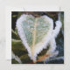 Uma folha em forma de coração com gelo na borda