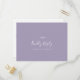 Este cartão postal de RSVP, pedido mínimo de lavanda de folha, é perfeito para um casamento elegante. A design apresenta uma simples silhueta verde de folha em púrpura lilás pastel com estilo minimalista de jardim boêmico. Crie sua lista de convidados de casamento e sua lista de músicas de dança de uma só vez! Este cartão de resposta do casamento convenientemente pergunta aos hóspedes se eles serão capazes de ir ao seu casamento, e também que música os fará dançar.