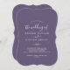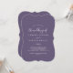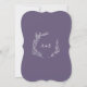 Este convite para o casamento de um monograma roxo de folha é perfeito para um casamento de boho. O design de tom de joia apresenta uma simples silhueta verde de folha em uma violeta azul escura roxa com estilo boho minimalista. Personalize as costas com as primeiras iniciais da noiva e do noivo.