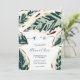 Um casamento legal e tropical com folha verde com folhas ficus elastica desenhadas à mão originais, adicione 4 de sua foto de casal favorita, um convite de casamento simples, minimalista e chic, adicione suas iniciais em uma tipografia moderna com letra escrita.