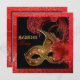 Mascarada quinceañera 15.o convite à folha vermelha festa de aniversário, com uma máscara de ouro vermelha veneziana, com penas vermelhas sobre fundo negro, com um ouro de folha vermelha falsa com textura esmagada. Dourado da banheira. Um design de modelo perfeito para a sua bola de mascarada de quinceañera ou fiesta de quince años, fiesta de quinceañera, quince años ou festa do macho de margarida. Note-se que não existe folha de ouro, máscara ou penas reais, mas todas elas são imagens "impressas".