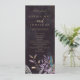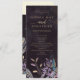 Folhagem à meia-noite, roxo, topaz e folhagem dourada contra fundo à meia-noite. Texto elegante fora do centro. Programa de casamentos/ordem de serviço ou folha de sinônimos.