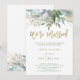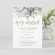Esses convites elegantes e minimalistas para brunch pós-casamento apresentam folhagens e folhas botânicas trendy em aquarela em um fundo branco limpo com uma fonte moderna, manuscrita em dourado falso que diz "nós casamos."