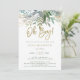 Estes elegantes e minimalistas convites para o chá de bebê apresentam cores vivas e folhas botânicas de cor-d-água num fundo branco limpo com um roteiro moderno de ouro falso que diz "oh rapaz!"
