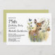 Capture a beleza da natureza com o elegante 75º convite de aniversário feminino apresentando uma pintura impressionante de um veado bebê fascinado por uma borboleta. Perfeito para uma vida selvagem ou celebração de aniversário com tema animal, este convite inspirado na arte irá certamente deliciar amantes da natureza de todas as idades. Este cartão pode ser projetado para qualquer pessoa de qualquer idade. Entre em contato comigo para obter assistência com sua personalização ou para solicitar produtos adicionais de correspondência ou coordenação para sua celebração.