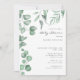 Elegante convite para chá de fraldas de folhagem de eucalipto.