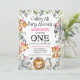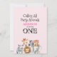 Convite Folhagem Floral Rosa Safari Primeiro Aniversário