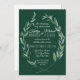 Amável e profundo tom verde esmeralda e verde-sábio macio tanto no trabalho de arte quanto na cor de fundo das elegantemente pintadas folhas de louros de aquarelas em tons suaves de verde mudos estão entrelaçados como seus corações - e suas famílias. Um conjunto completo de convites para o casamento e uma coleção estão disponíveis para combinar.