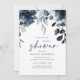 Convites de chá de panela Azuis marinhos (Site de Registro e Casamento na Parte Traseira): Esses convites de chá de panela azuis do marinho moderno são perfeitos para um chá de casamento azul marinho. Seus convidados de chá de panela vão adorar as flores azuis de marinho em cascata na frente, em conjunto com o moderno roteiro de escrita manual. A parte traseira apresenta um design de folhagem simples com as informações do registro do casal e do site (você pode excluí-lo se não quiser). Altere seu texto para torná-lo seu. Você também pode alterar a cor do texto e a cor do plano de fundo!