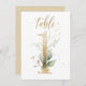 Belo cartão de número de mesa com um motivo botânico - uma ilustração aquática das folhas verdes e douradas. Mesa 1. Verifique todos os números disponíveis