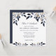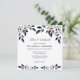 Folhas Azuis Com Convite Dourado Para Casamento Concebido com folhas fluidas em tons de azul-marinho escuro e azul-claro, acentuado com realces de ouro. O texto da frente inclui: Nomes da noiva e do noivo, juntamente com suas famílias, Nomes de Cheio da noiva e do noivo, Data de Casamento, Hora, Nome e Endereço do Local e Recepção a Seguir. O texto do lado inverso inclui: RSVP e Detalhes da sua resposta em um azul marinho escuro com sotaque floral. Para personalizar, simplesmente insira os detalhes do seu casamento no nosso modelo fácil, substituindo o texto de amostra. Certifique-se de ver todas as Folhas Azuis com a Coleção de Casamentos Dourados para cartões e acessórios correspondentes.