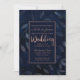 Convite Folhas Botânicas Azul Escuro Casamento Moderno Ros