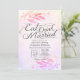 Modelo de Cartões de Convite de Casamento / Chá de Noiva Moderno - Magenta Salmão Rosa Vibrante Roxo Folhas de Aquarela e Escrita à Mão em Fundo de Salpicos de Aquarela.
