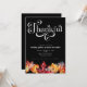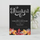 Convite Preto com Folhas Coloridas de Aquarela e Letra Branca de Agradecimento.