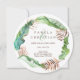 Cartão redondo único com terra verde e marrom das folhas tropicais de banana é uma bela maneira de anunciar seu casamento na praia! Folha de palma simples e design de folha de bananeira é versátil para uma variedade de insulares, casamentos de praia, ou cartões de casamento de destino e placas. O trabalho de arte de folha de aquarela é um design minimalista excelente para temas básicos das ilhas tropicais.