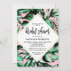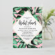 Chá de panela Palm Deixa Convites - decorado com folhas de palma em fundo rosa.