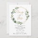 Este cartão de Mudar a Data elegante e personalizável apresenta uma moldura geométrica dourada adornada com folhas de eucalipto em aquarela sombria e foi combinada com uma caligrafia caprichosa e uma fonte serifada clássica em dourado e cinza. Para fazer alterações avançadas, selecione a opção "Clique para personalizar ainda mais" em Personalizar este modelo.