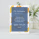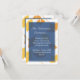 Evite qualquer confusão e inclua um cartão de recepção se a recepção do seu casamento for em um local diferente. Você pode personalizar facilmente o cartão com os detalhes da recepção e as direções para chegar (se necessário). O texto é definido em fontes clássicas sobre um bloco de cor com borda, que sobrepõe folhas de ginkgo douradas. Basta alterar as palavras se precisar de cartões de invólucro para informações adicionais para convidados de fora da cidade.