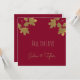 Cartão de convite quadrado com folhas de maple de ouro em fundo burgundy. Vem com o texto " Cair in Love " convite/anúncio de Na moda para o seu casamento no outono/outono. Ambos os lados são personalizados! Modelo design por Alma Wad.