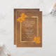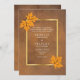 Folhas de maple laranja em papel de cor castanho esmanchado, convite para casamento rústico ou convite com uma moldura de ouro em fundo castanho e folhas de maple laranja nos cantos. Este elegante design moderno, com talento de colheita, faz parte de um casamento ou coleção e é um modelo perfeito para um casamento de outono.