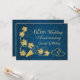 Folhas de videira coloridas a ouro e conjunto de corações unidos contra um fundo de damasco azul Convite para festa de aniversário de casamento de 65 anos