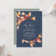 Este outono deixa marinho azul e o convite para chás de fraldas burguês é perfeito para um chá de fraldas de outubro. A design rusticidade moderna apresenta uma mão espantosa pintada de folhas de outono de aquarela em tons coloridos de amarelo, laranja queimado e vermelho queimado que pop sobre um fundo azul marinho.