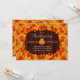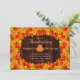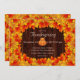 Convite russo com um fundo de prancha de madeira, fronteira com as folhas do outono e torre de abóbora.