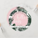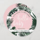 Linda folhagem chic e de palmeira-tenda e chá de fraldas de convite para bebê rosa com design de com cor verde-d-água profunda folhagem de palma com círculo rosa pálido e padrão de bolinhas chic branco. Um texto manuscrito de script "Hello baby" é exibido no centro em branco. O verso apresenta um fundo cor-de-rosa com os detalhes do evento do chá de fraldas exibidos em um layout limpo. São acrescentadas outras folhas de palma verdes tropicais para complementar a trabalho de arte frontal. Todas as ilustrações contidas neste convite para chá de folha de palma tropical e de menina de madeira são obras de arte originais desenhadas à mão pela Moodthology. Você pode personalizar o tamanho do texto, a cor do texto, a fonte e o layout para a sua própria preferência de design pessoal.