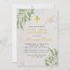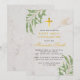Há ramos de salgueiro com folhas nos cantos, superior esquerdo e inferior direito. Há uma grande cruz dourada acima do texto (é folha de ouro falso). As palavras "Primeira Comunhão" e o nome são dourados; o nome é escrito em uma caligrafia.