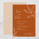 Convide seus amigos e entes queridos para uma celebração de casamento virtual com este convite elegante e sofisticado para salvar a data, apresentando uma paleta de cores terracota em tons terrosos com um design de folhas esboçadas. Personalize-o com os detalhes do seu casamento.